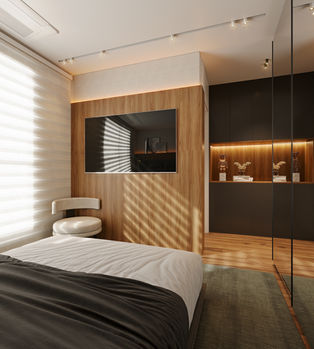 A ala íntima conta com circulação independente, quartos dos filhos com linguagem contemporânea e uma suíte master pensada como refúgio de descanso, bem-estar e contemplação, com closet desenhado para acomodar a vida de forma prática e sensível.